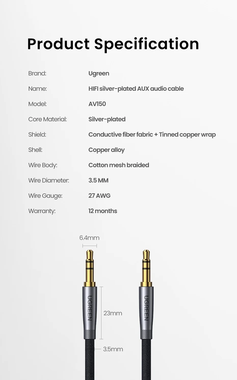 Ugreen Aux Cable Jack 3.5mm Audio Cable for iPhone 3.5 mm Male Cable Aux for Computer Headphone Xiaomi Laptop Car 3.5 Jack Cable