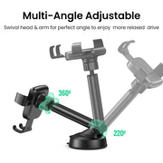 1>>>Universal Car Phone Mount:3 mounting methods for you to choose: a dashboard car mount, a windshield phone holder, and even an air vent cell phone cradle.