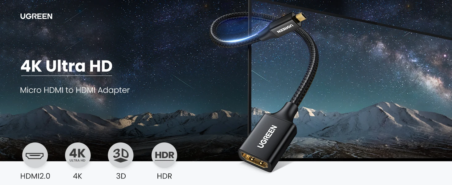 UGREEN Micro HDMI-Compatible Adapter 4K /60Hz Micro Male to Female Cable Connector Converter for Raspberry Pi 4 GoPro Micro