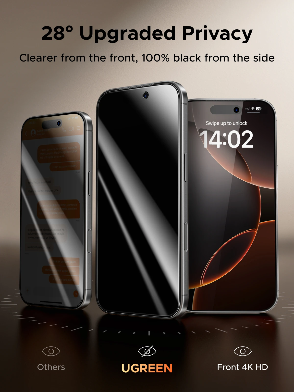 UGREEN 1/2 PCS Anti-Spy Glass for iPhone 17 Pro Max Screen Protector for iPhone 17 Air Privacy Screen Films