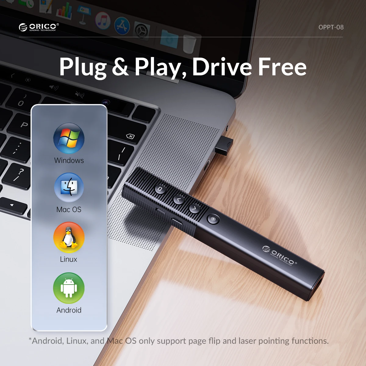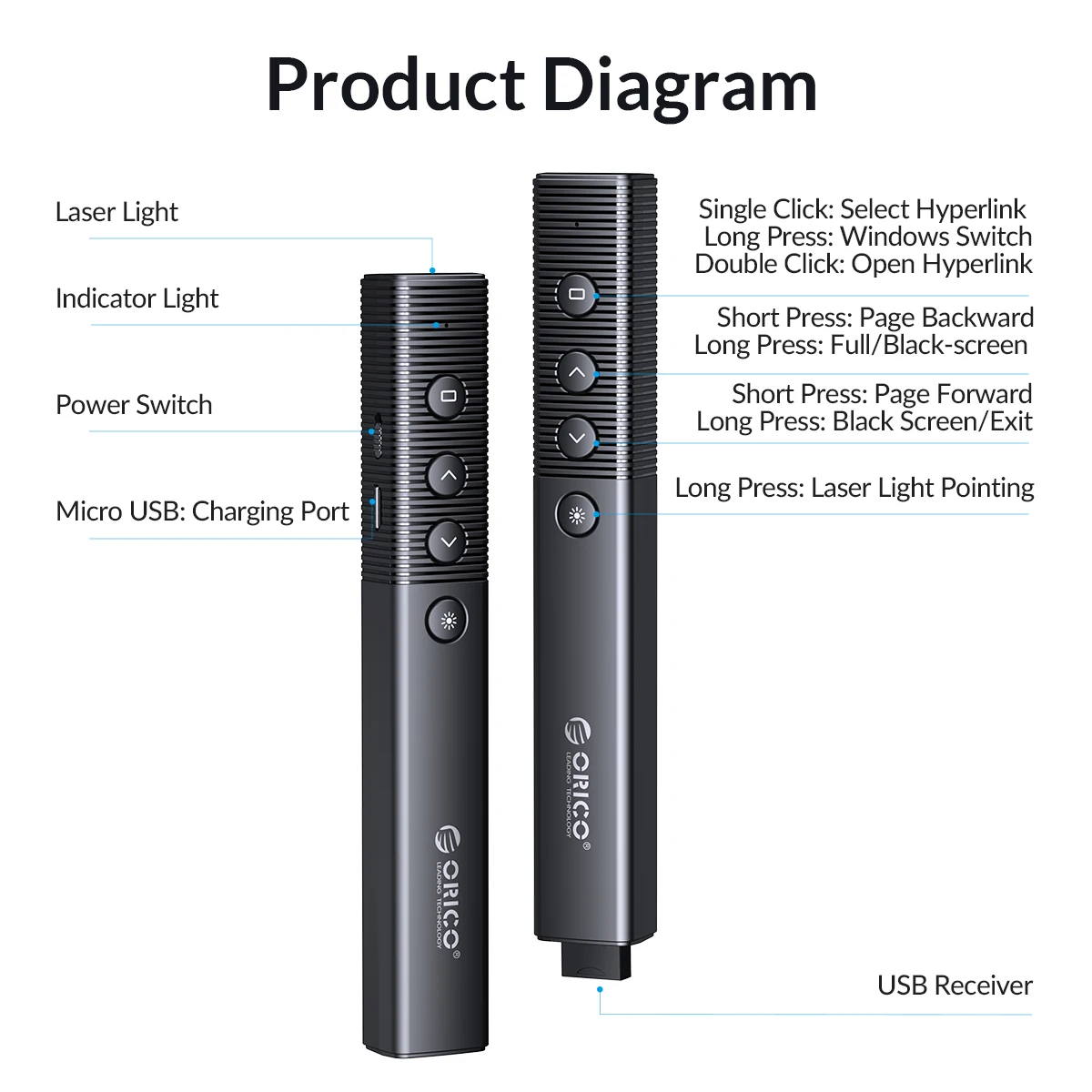 ORICO Presentation Clicker Remote Laser Pointer Wireless USB Presenter Slideshow PowerPoint Clicker 2.4GHz for Google Slides