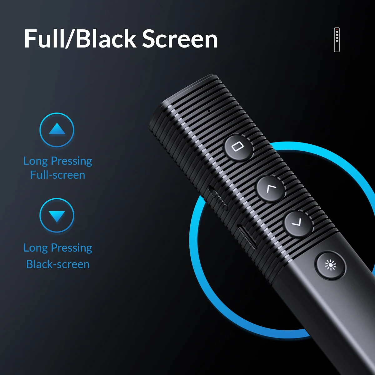 Intuitively placed touch-keys put all the controls you need right at your fingertips. Press forward or back to move through your slides. Press the laser pointer key to highlight your point. Start or stop your presentation when you're ready or use the black screen button to shift the attention back to you.