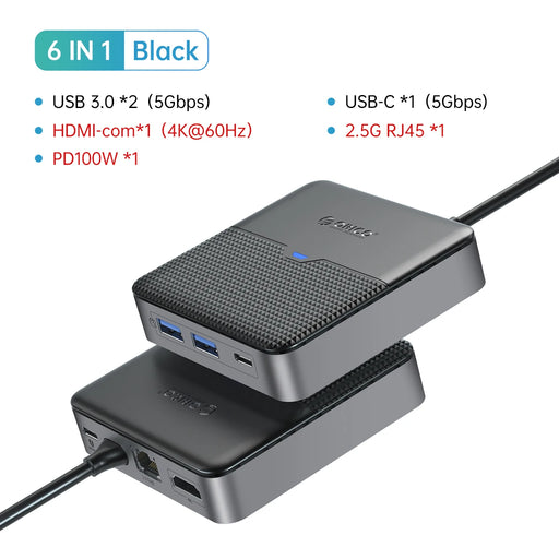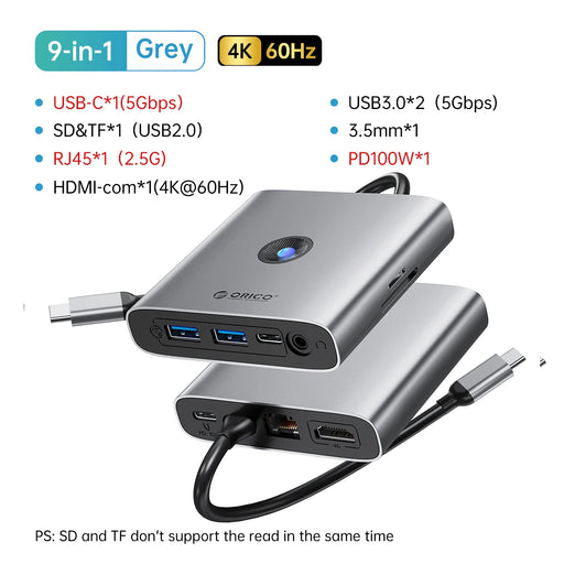 មើលព័ត៌មានលម្អិតពេញលេញORICO 10Gbps Type C Docking Station 4K60Hz HDMI-compatible USB3.0 2.0 HUB RJ45 PD100W Adapter Card Reader for Laptop Accessories