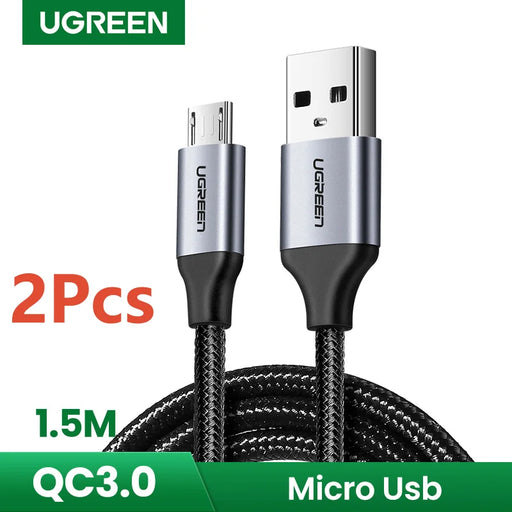 មើលព័ត៌មានលម្អិតពេញលេញUGREEN 2 Pack Micro USB Cable 3A Fast Charging 1.5m USB Cable for Samsung Xiaomi HTC USB Charger Data Cable Mobile Phone Cable