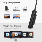 UGREEN SATA to USB 3.0 Adapter can easily connect a 2.5" SATA SSD or HDD with your computer to expand storage.