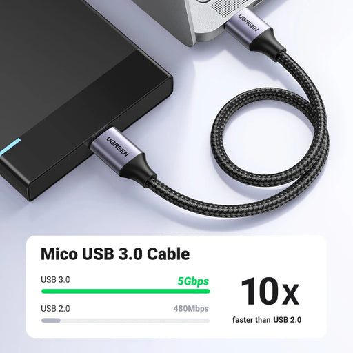 មើលព័ត៌មានលម្អិតពេញលេញUGREEN Micro B Cable USB 3.0 3A Fast Charging 5Gbps Data Cable External HDD Cable USB Cord for Samsung Hard Disk SSD Sata Cable