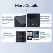 Built-in SATA3.0 Dual-Core chip, and Upgrade the 150W power supply to support larger capacity hard drives, provide sufficient power to ensure the Data storage and Transferring's Safety and Stability, Independent safety lock for each drive, Protect your hard drive with care.