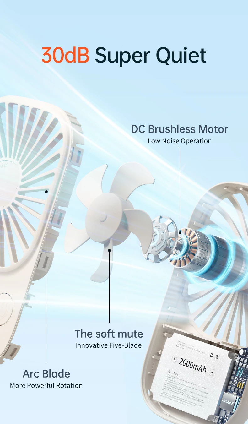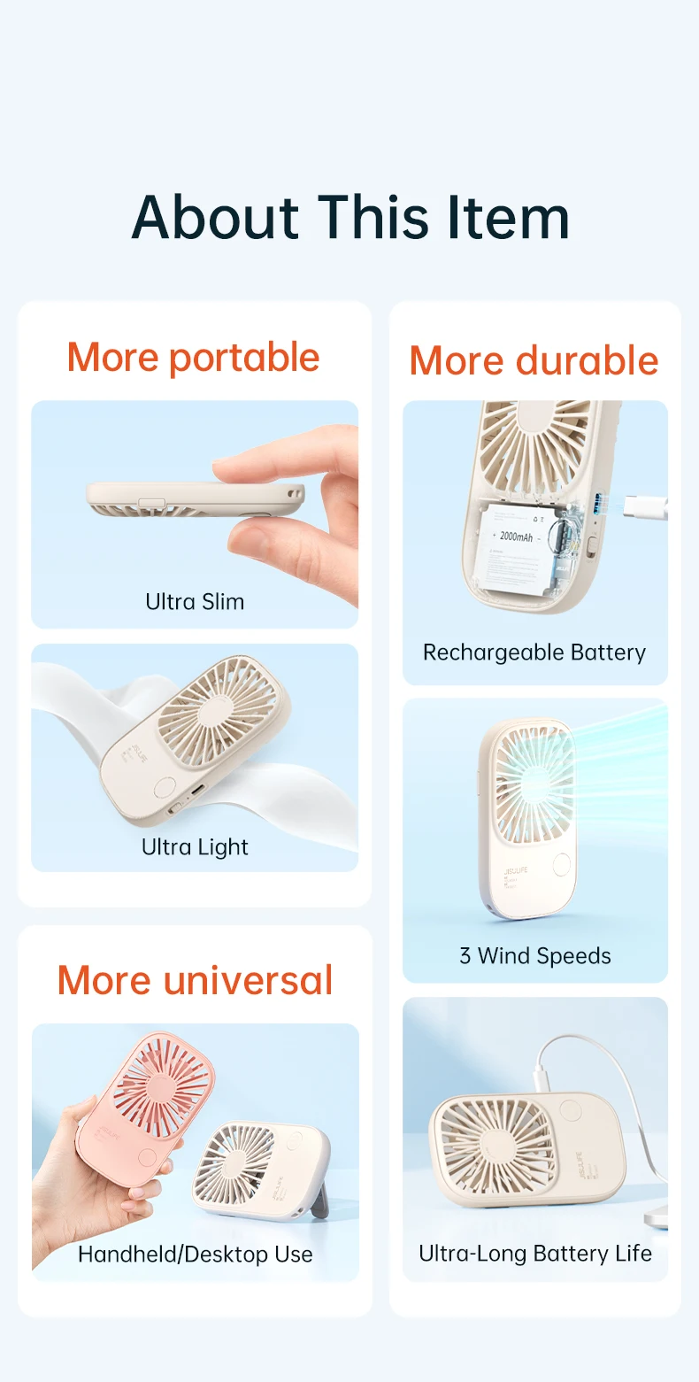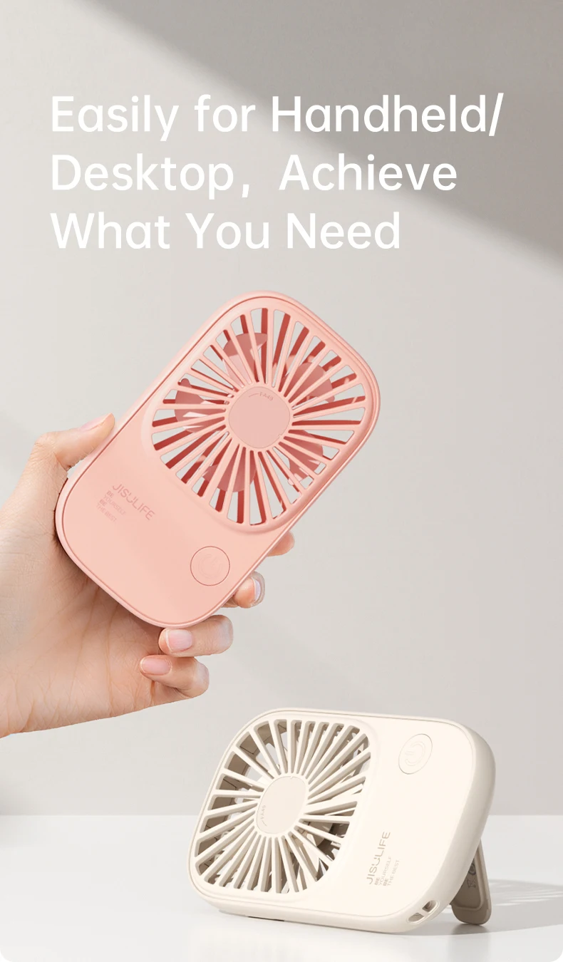 JISULIFE Mini Handheld Fan, Small Fans Portable with Bracket, USB Rechargeable Desk Fan ,Makeup Eyelash Fan ,Send Lanyard