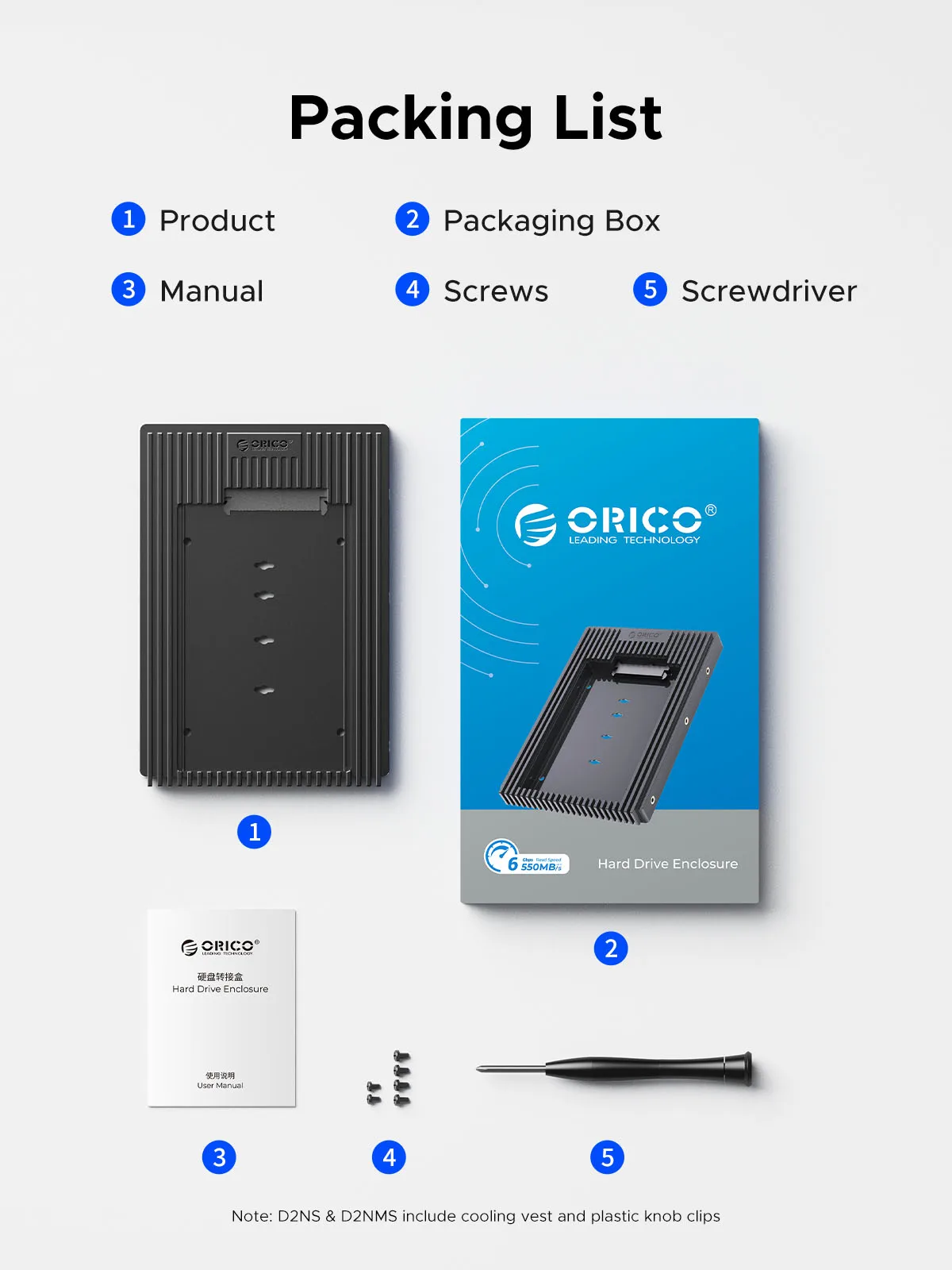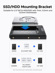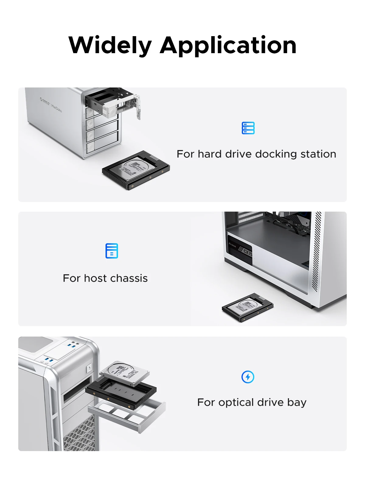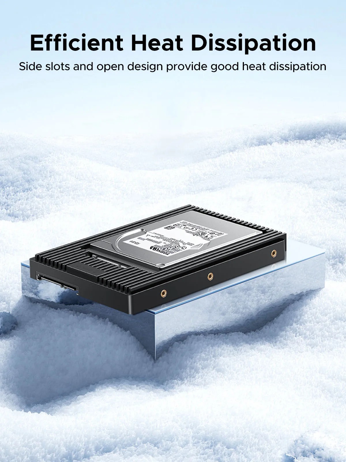 Suitable for 2.5 inch SATA HDD/SSD with 7mm, 9.5mm and 12.5mm thicknesses.Efficient Heat Dissipation and Stable Operation