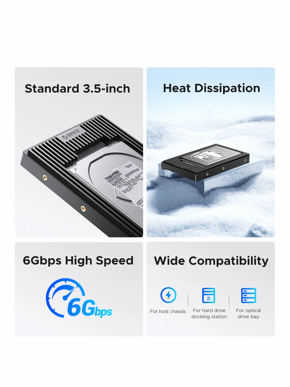 This adapter box is designed for various scenarios. It can be installed in the computer chassis to add a 2.5-inch hard drive slot, used with a hard drive cabinet for easy hard drive swapping, or paired with an optical drive slot to provide additional storage options for your computer.Standard 3.5-Inch Drive Size