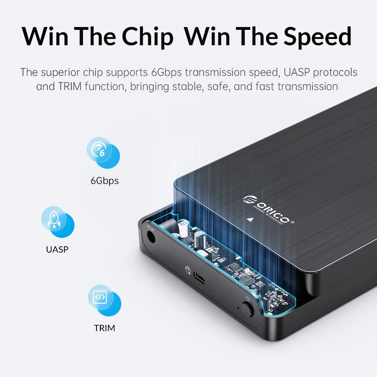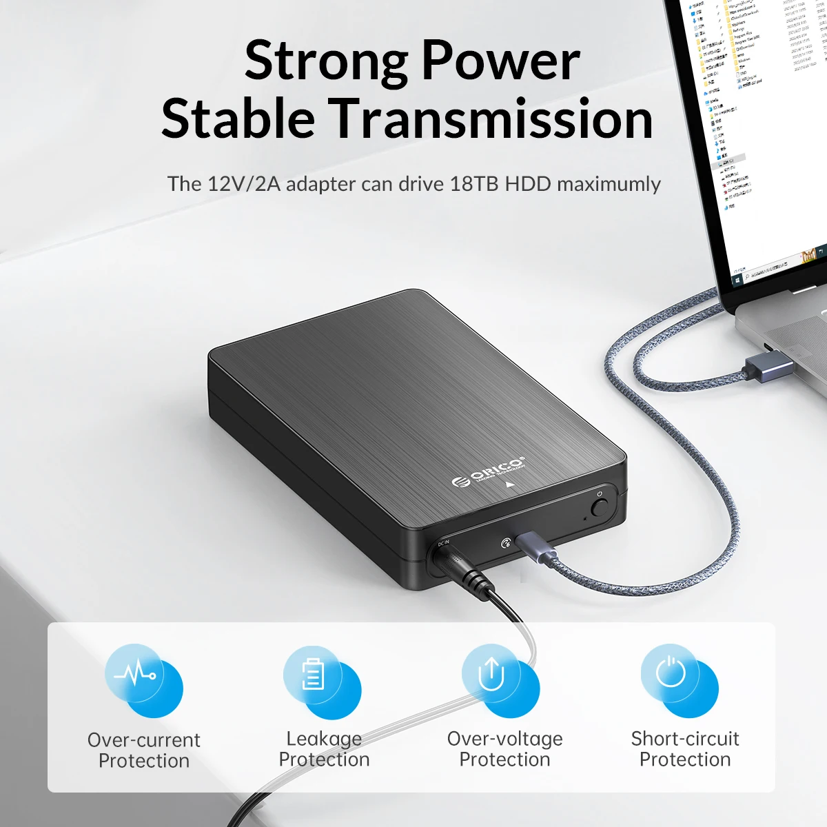 ORICO 3.5" HDD Case SATA to USB C 6Gbps External Hard Drive Case for 3.5 inch HDD Enclosure with 12V Power Adapter
