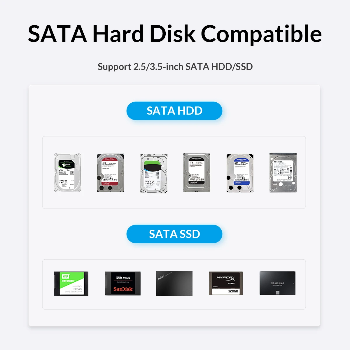 *Compatible: 2.5"/3.5" SATA III / II / I HDD and SSD of capacity up to 18TB , Supports all 2.5/3.5 inch SATA drives.