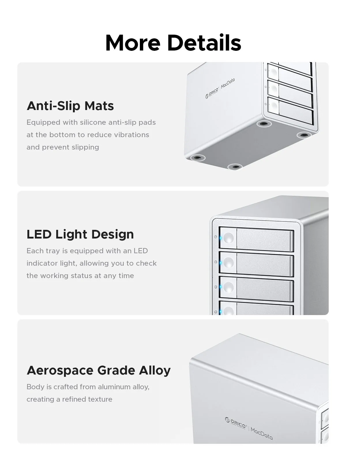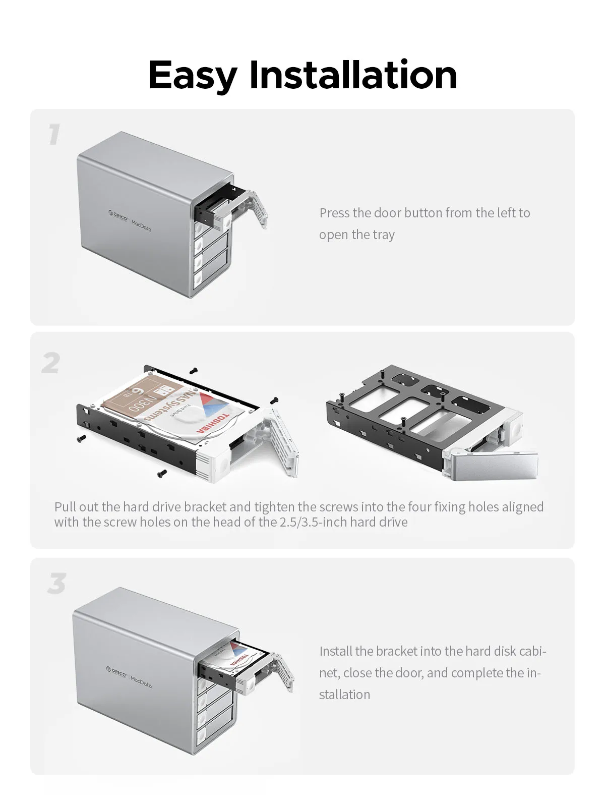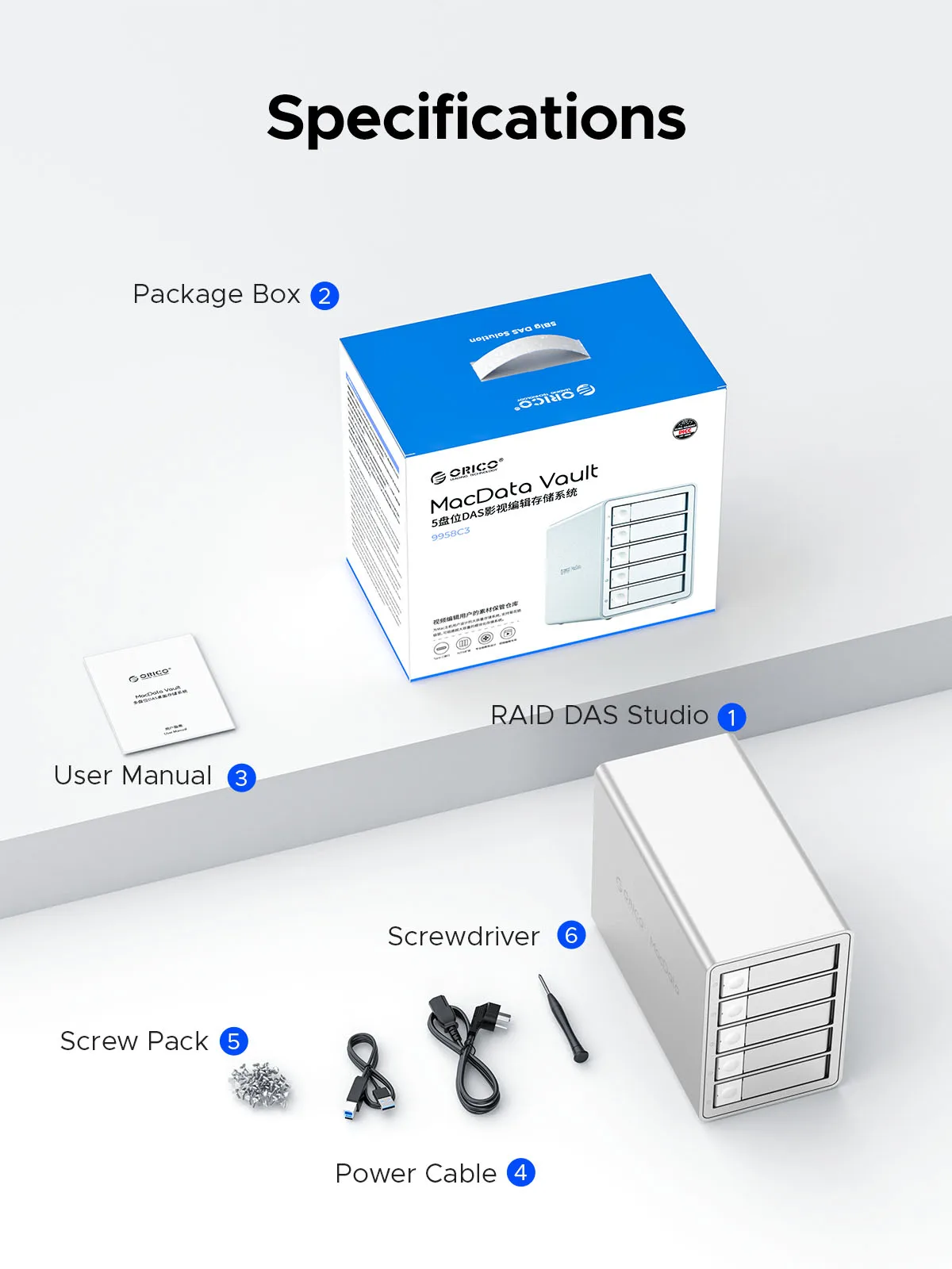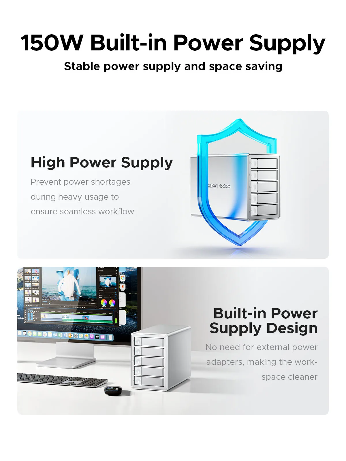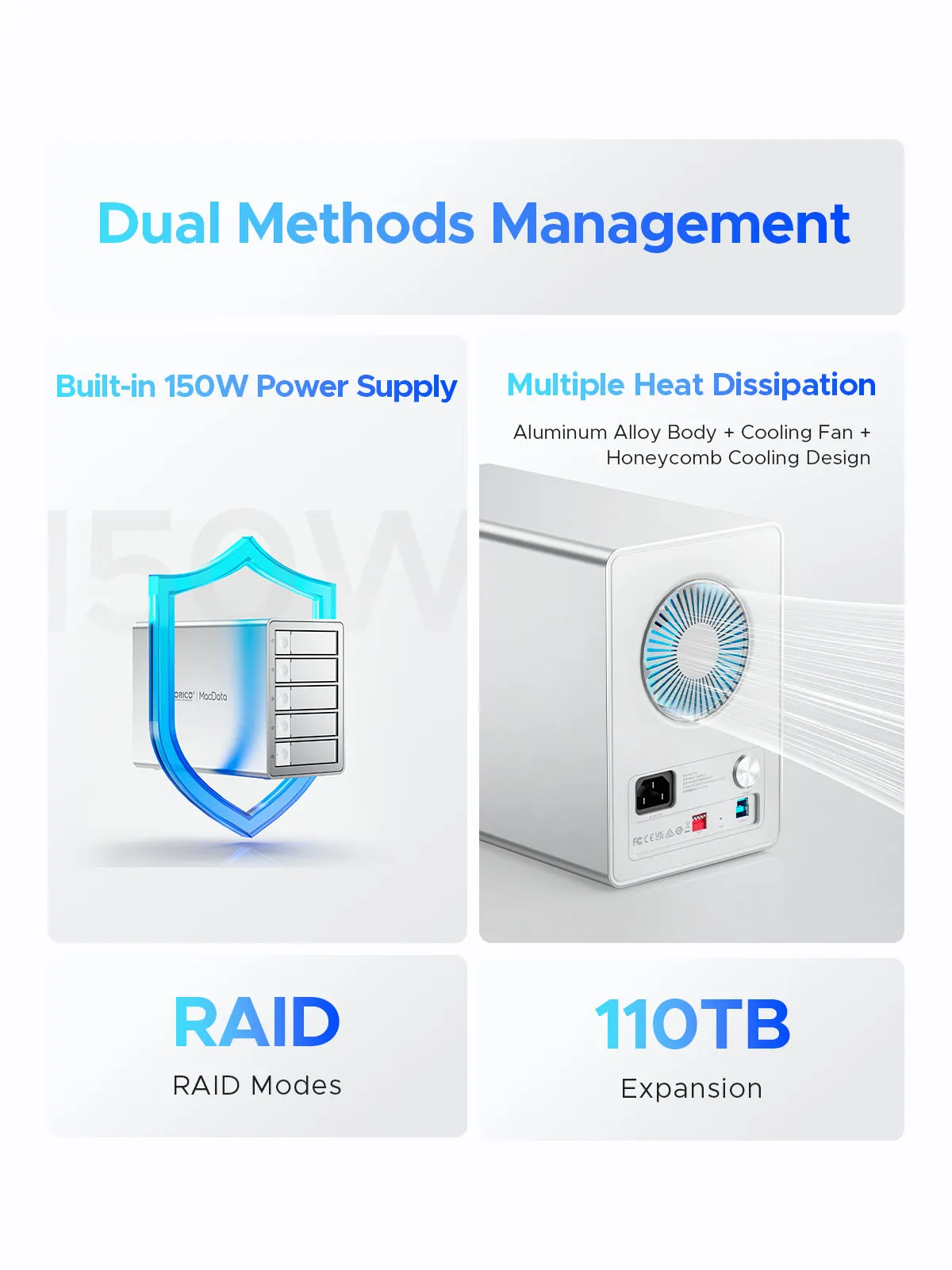ORICO 3.5"RAID USB3.0 5Gbps HDD Docking Station 150W Power With Cooling Fan for Apple device 5Bay RAID DAS Studio Series