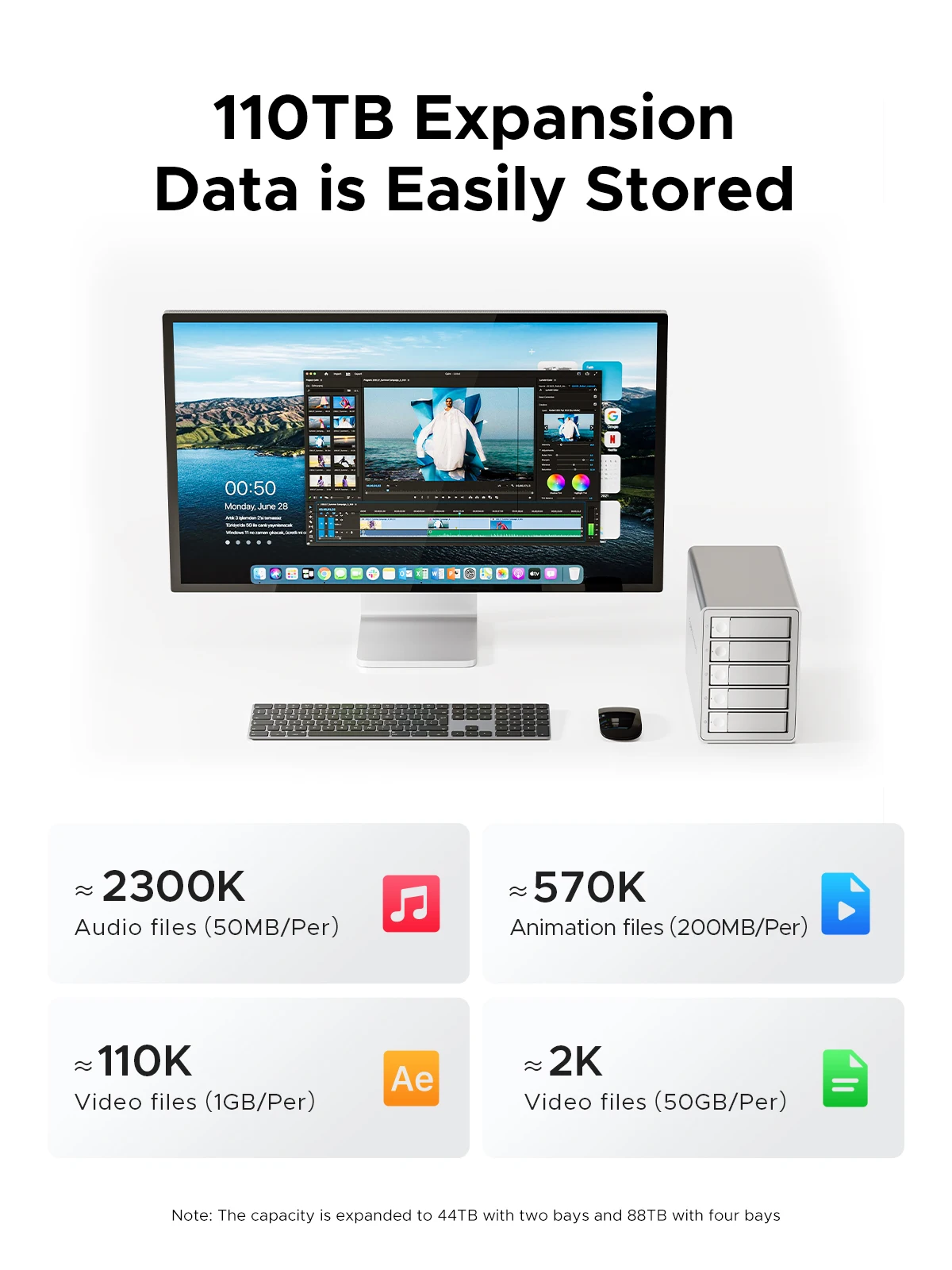2-Bay: 44TB /4-Bay:88TB / 5-Bay: 110TB
