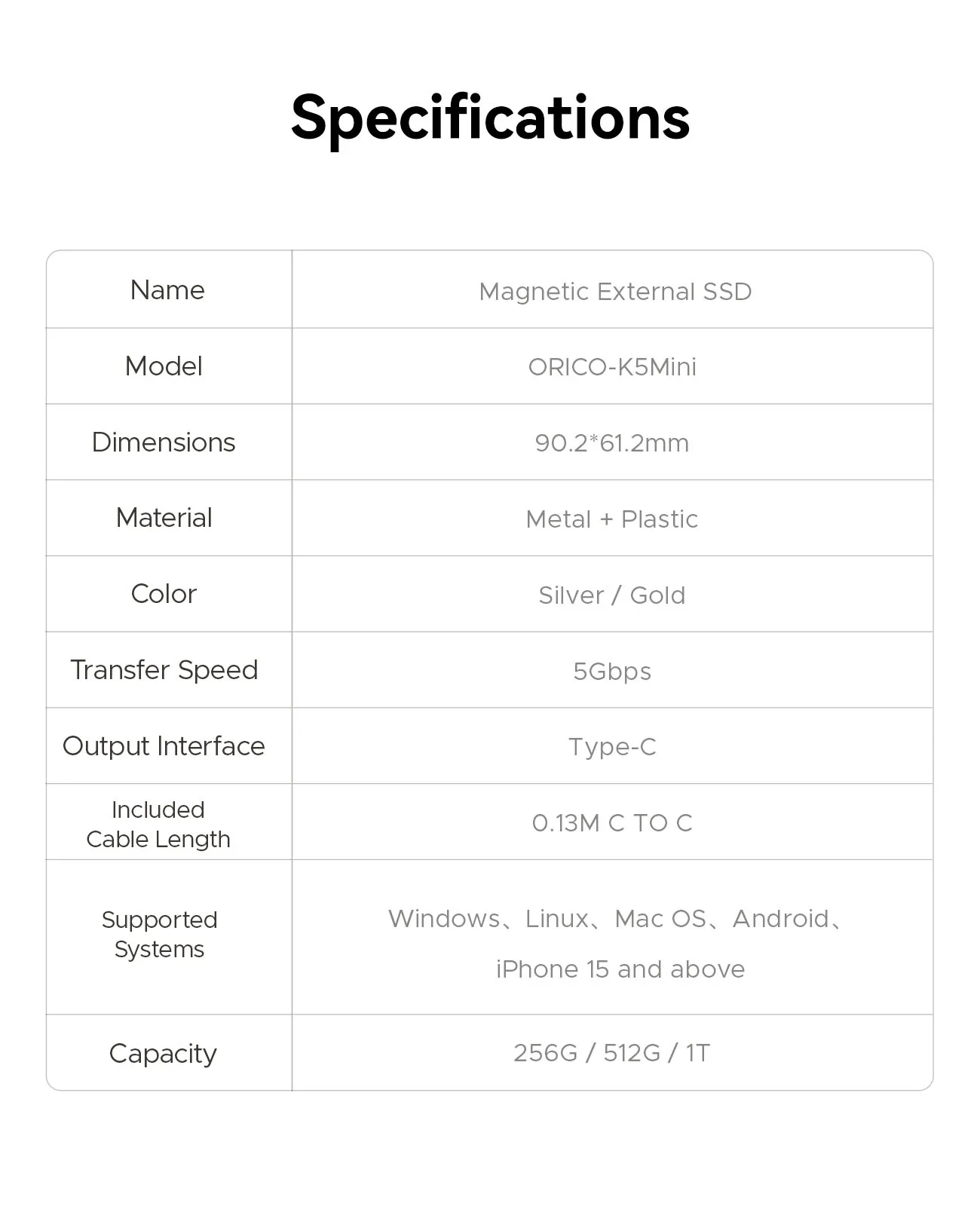 ORICO 560MB/S Portable SSD USB3.2 PSSD 480GB External SSD for iPhone 17 16Pro/Max ProRes 4K ProRes K5MINI-VB