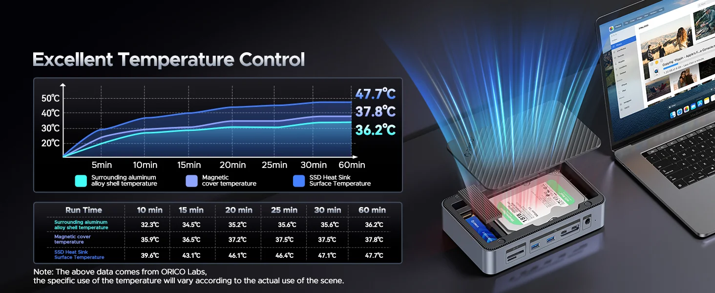 with intelligent cooling fan, cooling vest and aluminum alloy shell make reading smoothly, ensure your data security.