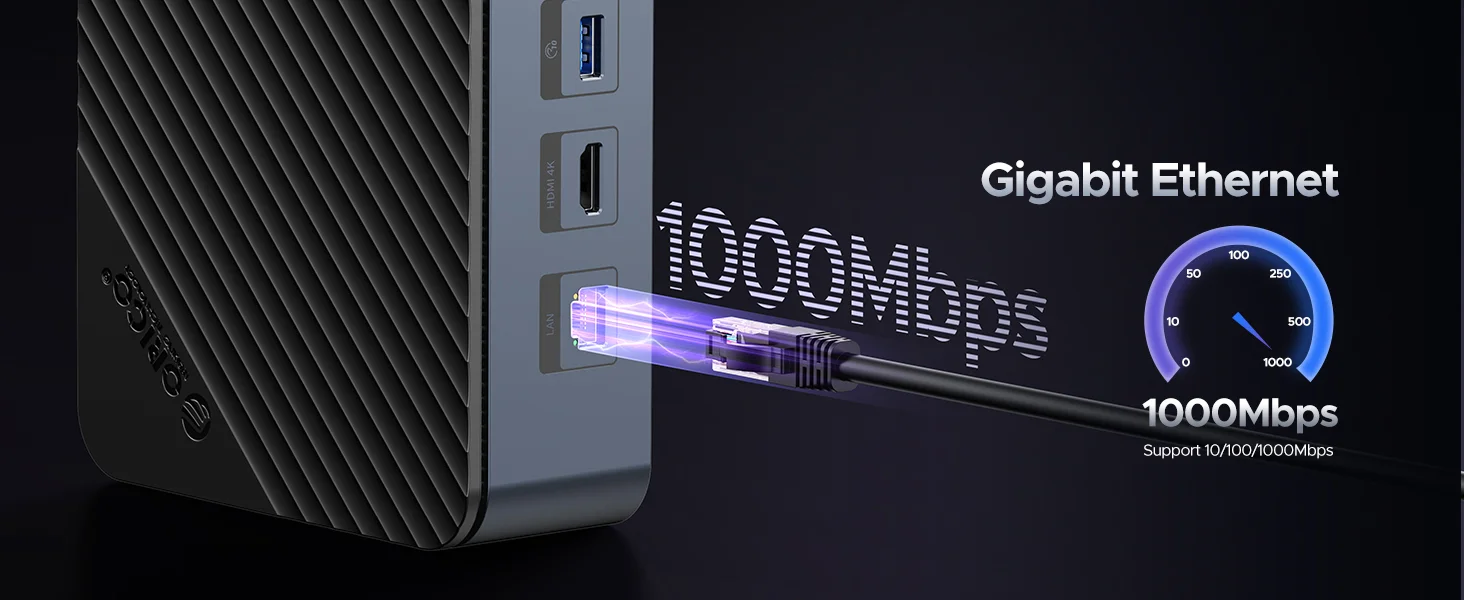 RJ45 1000Mbps port to the computer to obtain a stable network speed.