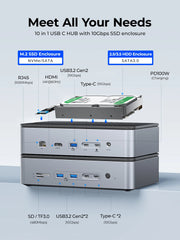 10 in 1 USB C HUB with Dual M.2 and 3.5 enclosure.