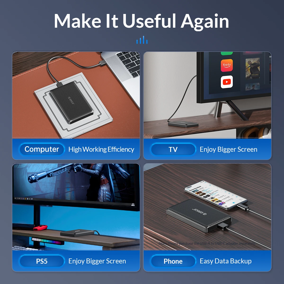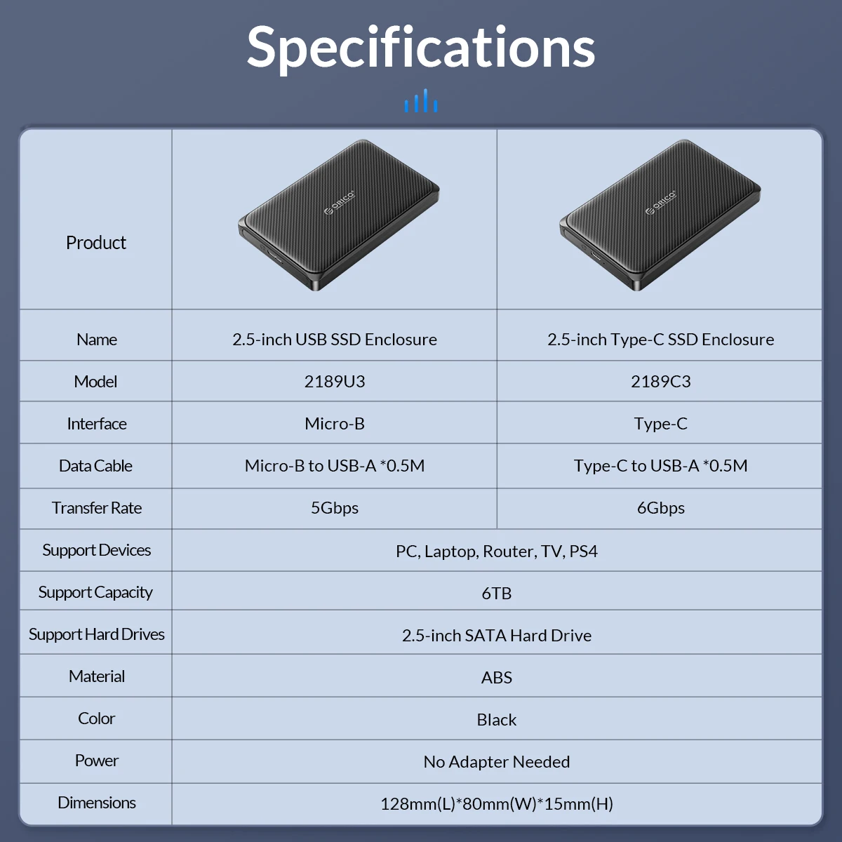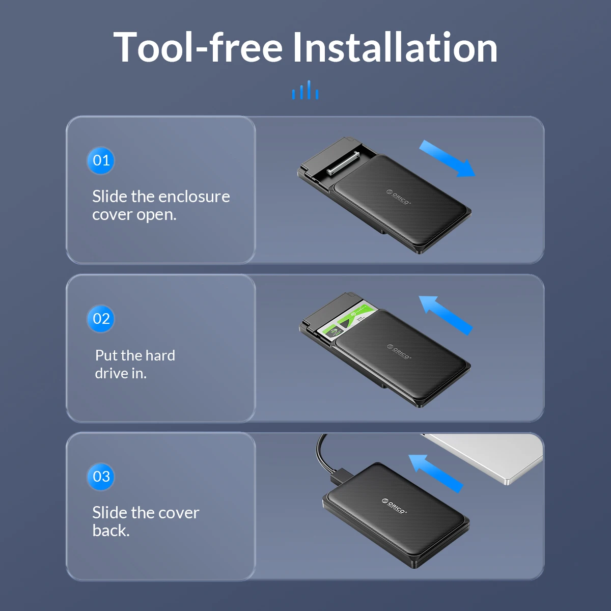 ORICO External Hard Drive Case, SATA to USB 3.0, 5Gbps, 6Gbps, HDD Enclosure for PC Computer PS5, 2.5 Inch