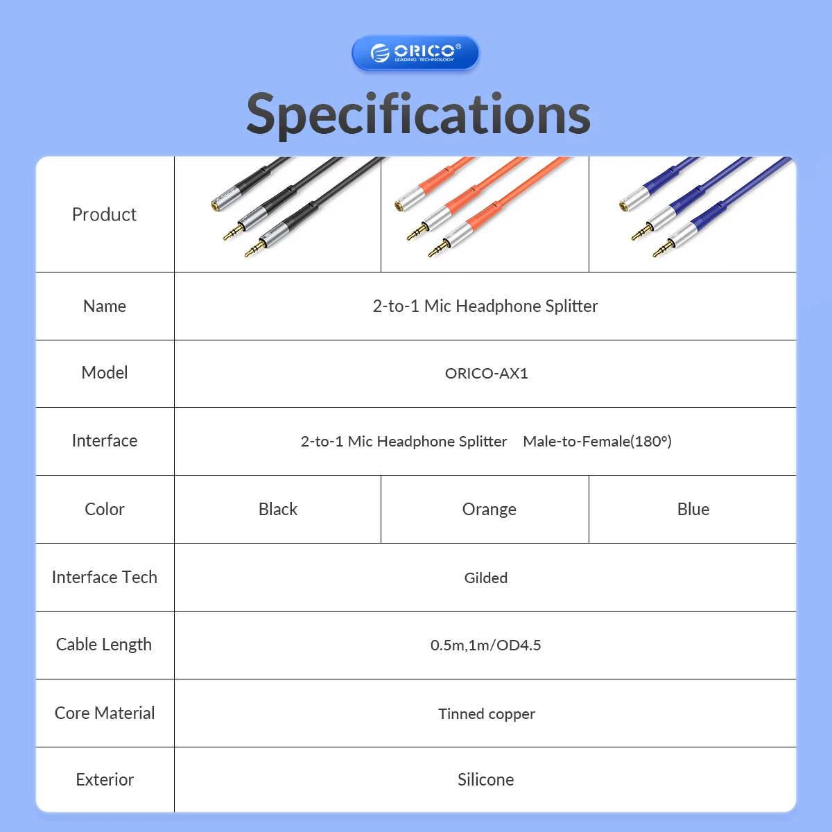 ORICO Headphone Splitter 3.5mm Audio Mic Cable Microphone Liquid Silicone Wire for PC Laptop Headsets Nintendo Switch Speaker