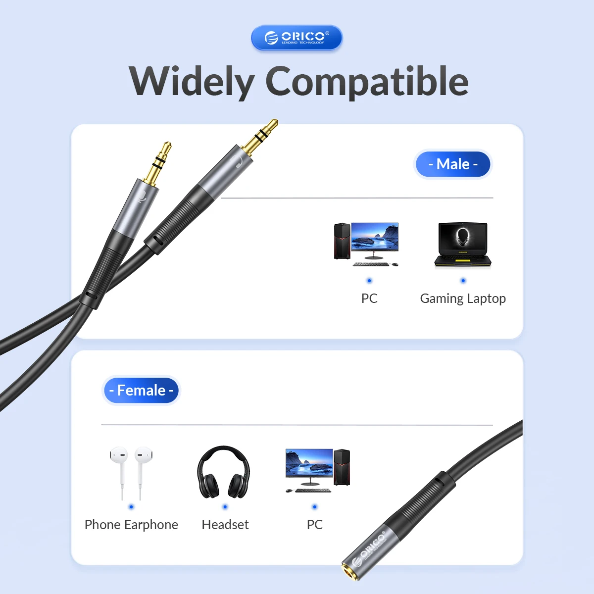 Suitable for 3.5mm dual audio (headphone and microphone) interface between the desktop, laptop, player and other devices and headphones.