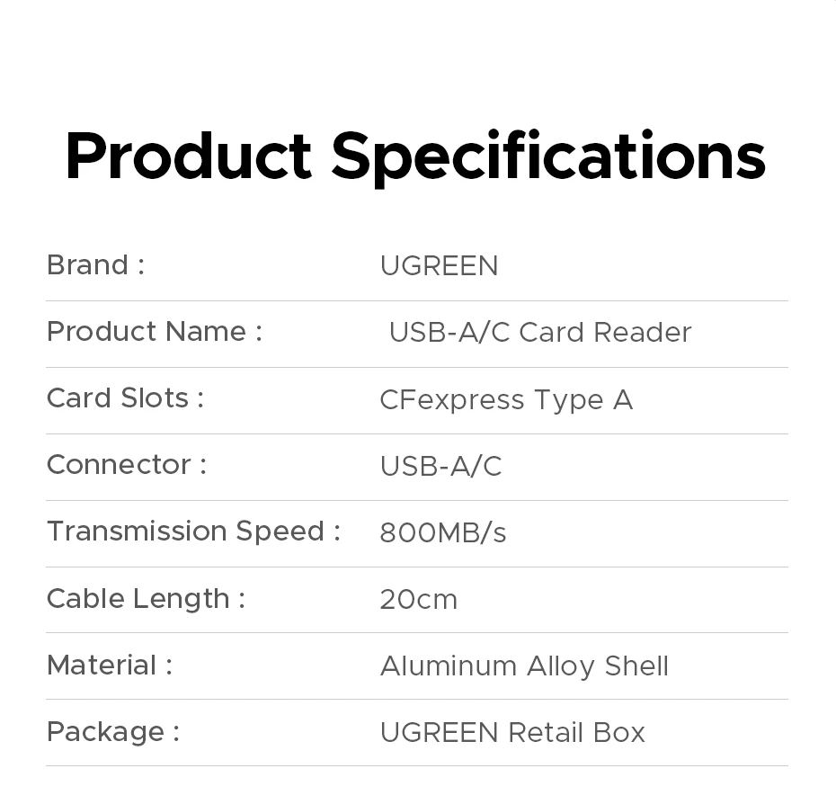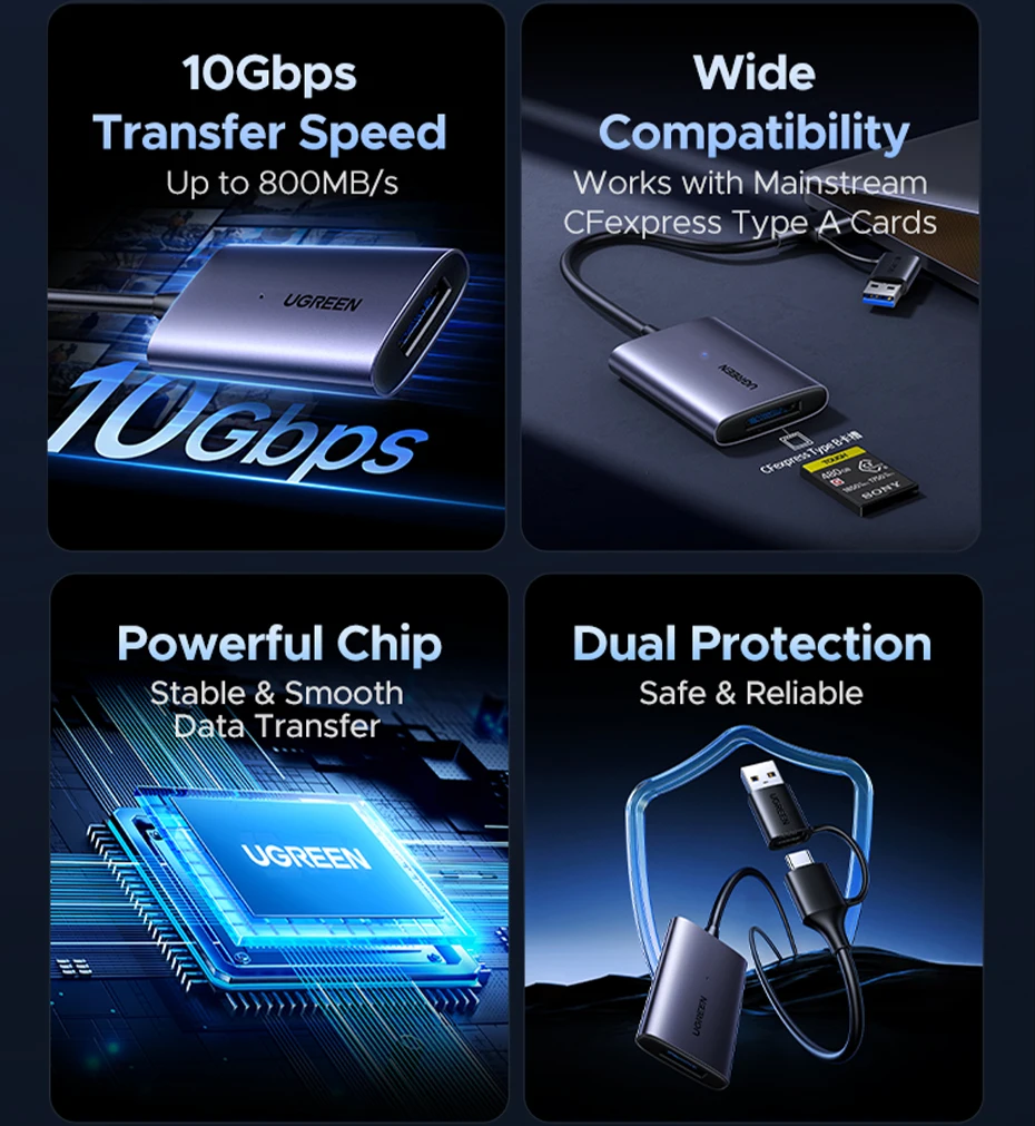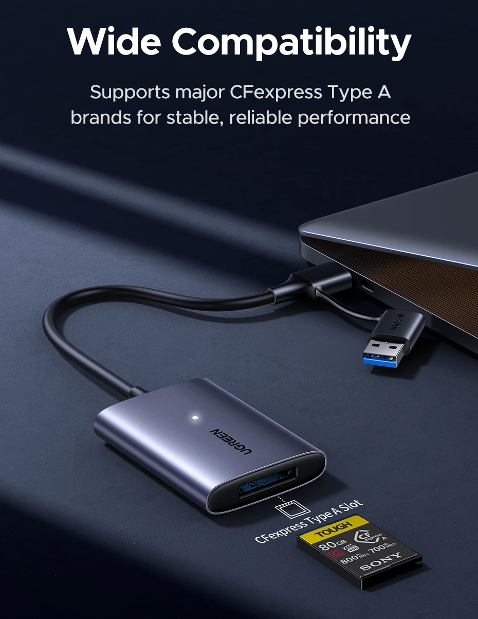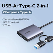 UGREEN CFexpress Type A Card Reader 800MB/s USB-A+Type-C 2-in-1 Plug Compatible with Laptop PC iPhone17 16 Samsung S25 iPad Pro