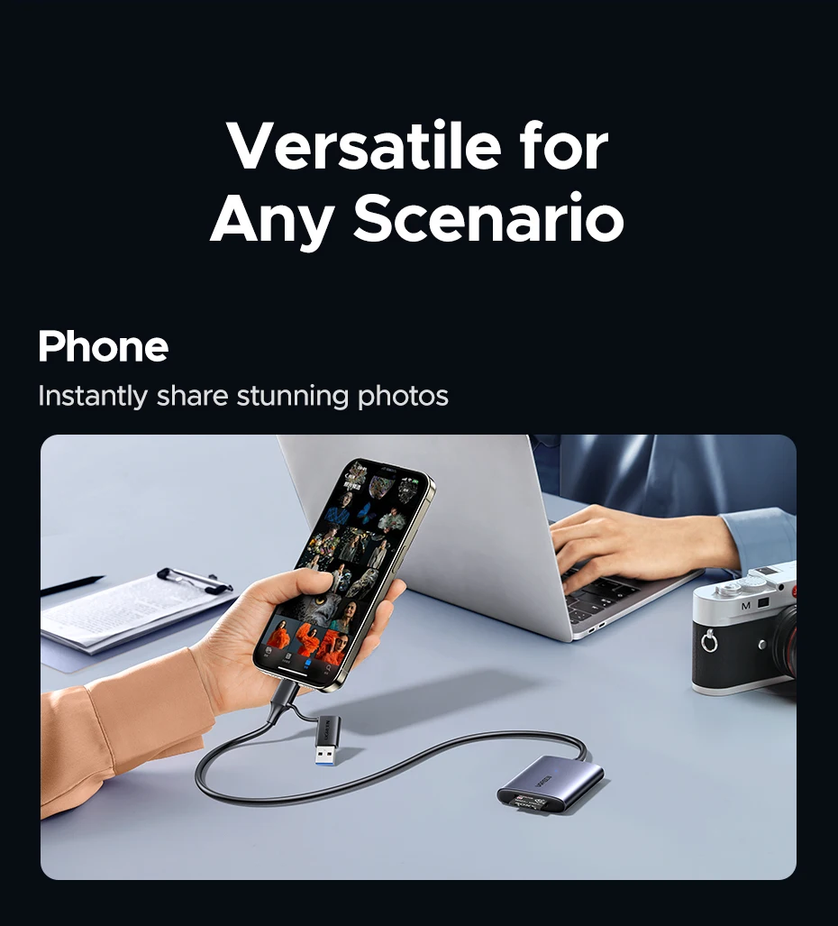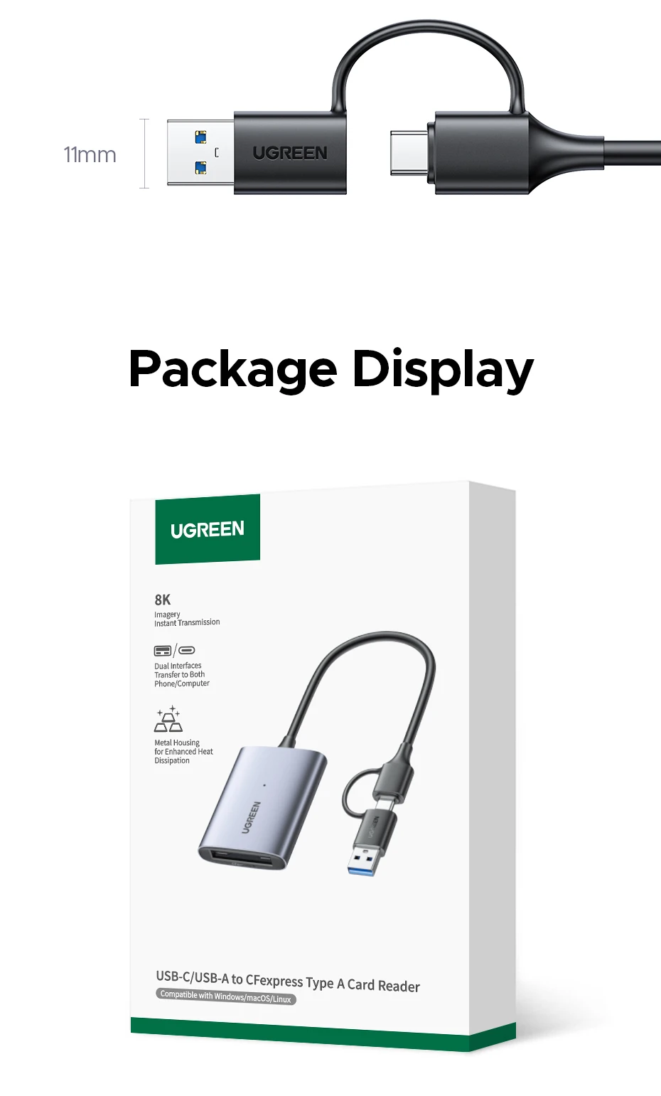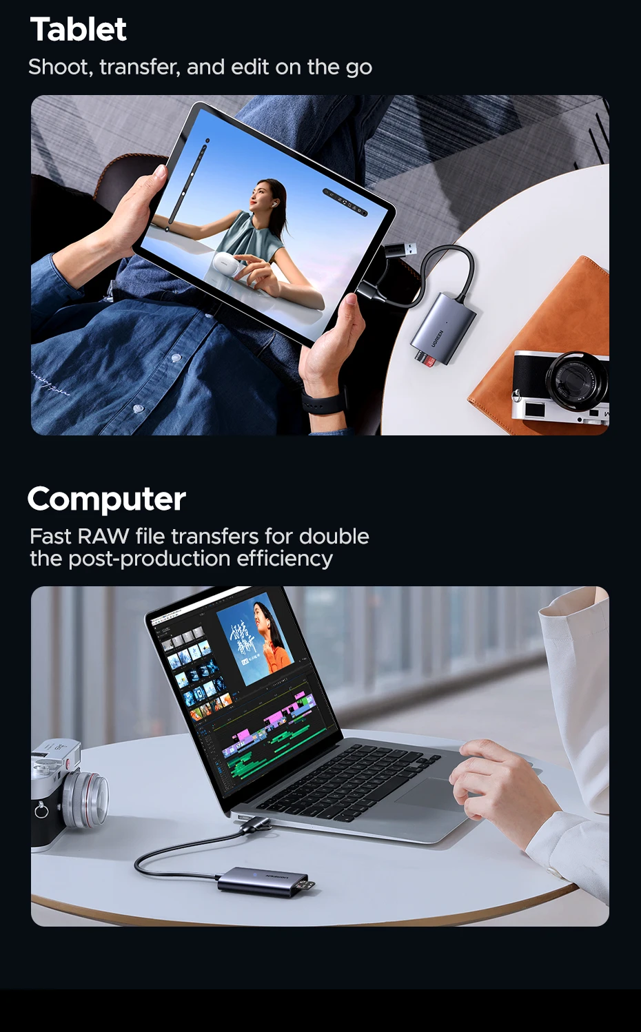 UGREEN CFexpress Type A Card Reader 800MB/s USB-A+Type-C 2-in-1 Plug Compatible with Laptop PC iPhone17 16 Samsung S25 iPad Pro