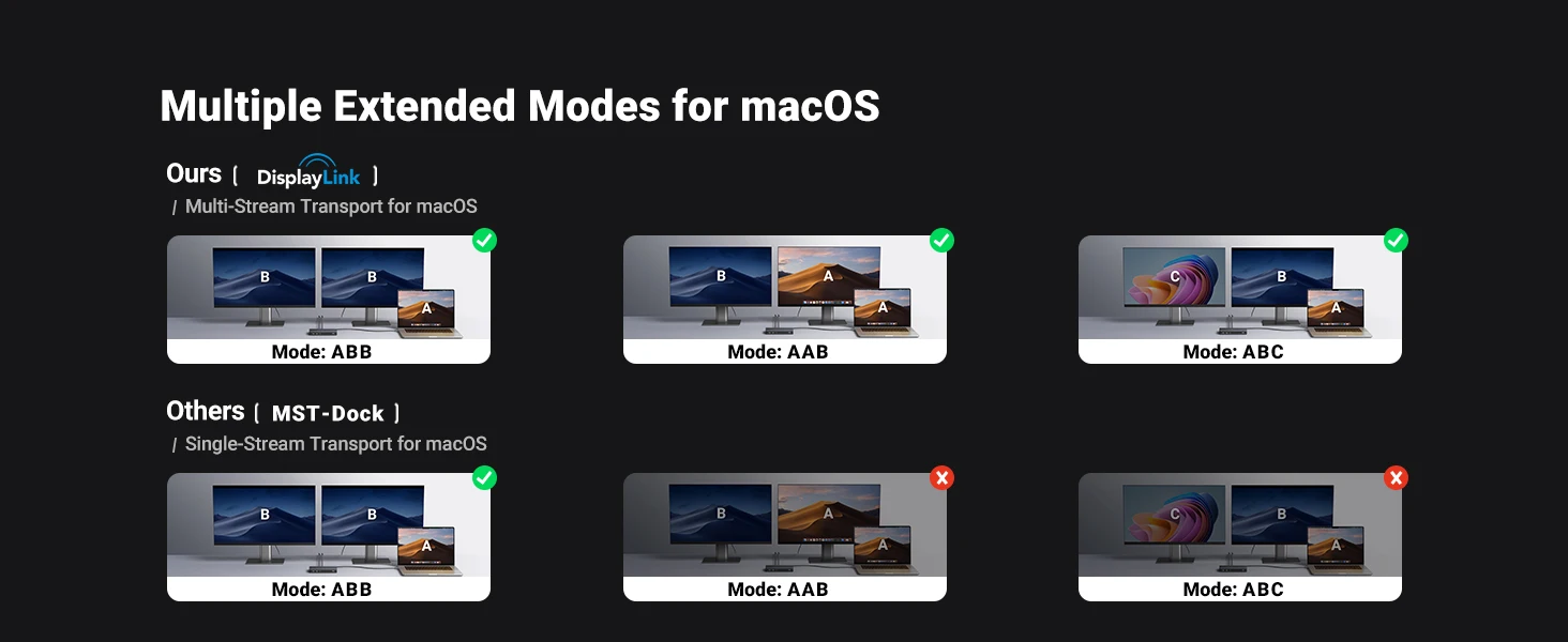 Multiple Extended Modes for macOS /Windows: ABC/AAB/ABB