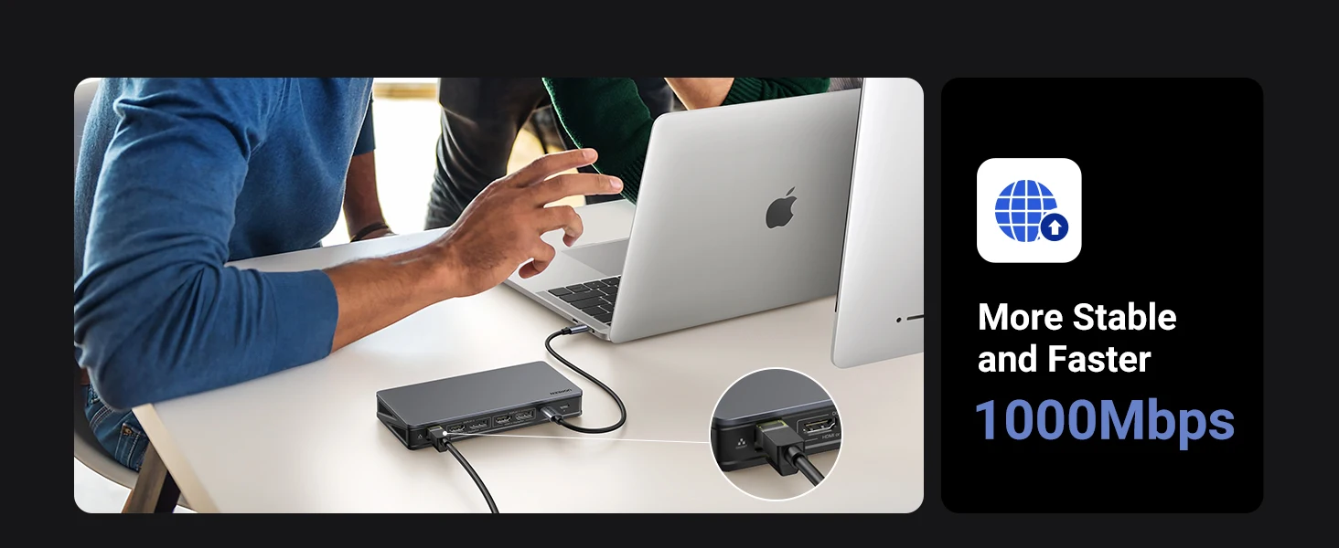 More stable and faster 1000Mbps*Note: If the RJ45 port can't work, please check whether the driver has been installed.