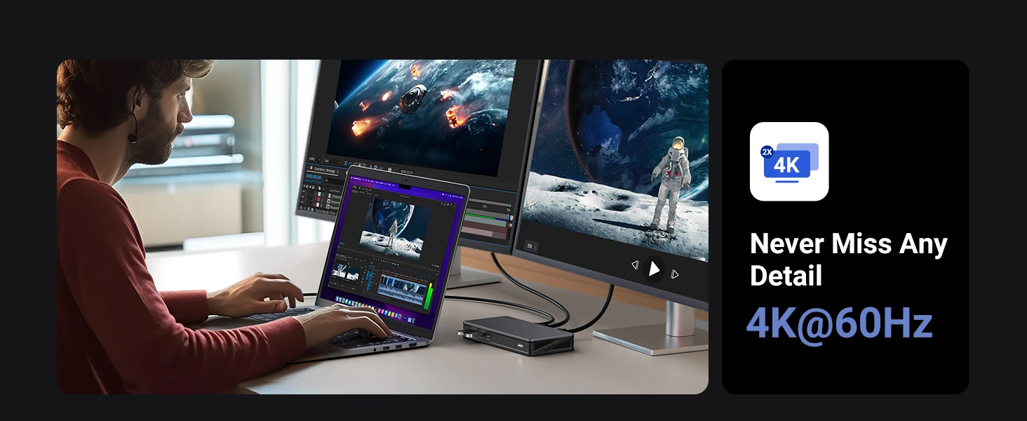 2*DisplayPort 4K60Hz + 2*HDMI 4K60Hz + RJ45 + PD 100W +