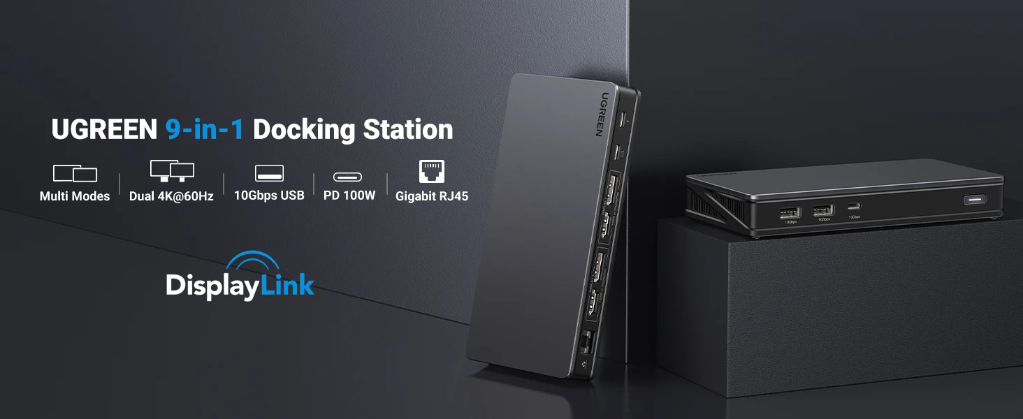 UGREEN USB C HUB Docking Station DisplayLink 9-in-1 2DP 2HDMI Dual 4K@60Hz for MacBook Windows 10Gbps PD100W Gigabit RJ45 Ports