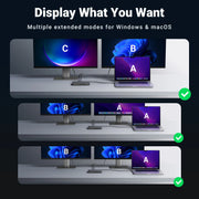 · Multi-Extended Modes for macOS: Boost your work efficiency with the UGREEN USB-C Docking Station's DisplayLink Technology to extend dual 4K@60Hz monitors for macOS and Windows systems. Choose between extended or mirrored display modes effortlessly. (Driver installation required for display and network functions)
