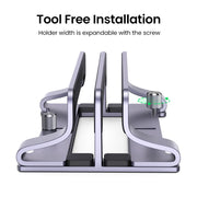 UGREEN vertical laptop stand features dual slot to cradle two laptops simultaneously in an upright position to optimize and organize your desktop space.